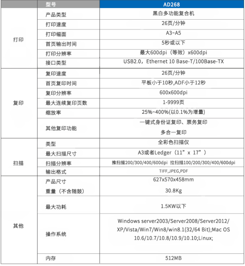 震旦打印機AD268黑白多功...